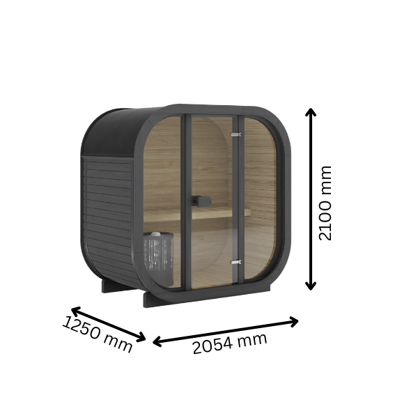 Ula Mini Mirror er en moderne og stilfull utendørs badstue designet for 2 personer – perfekt for små hager eller terrasser eller . Den kube formen kombinert med speilglass i front gir et unikt og eksklusivt uttrykk. Badstuen måler 2,05 x 1,25 m og har en høyde på 2,1 m, noe som gjør den plassbesparende uten at det går på bekostning av komfort og funksjon.