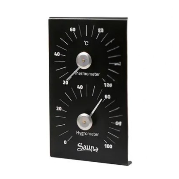 Mål temperaturen og luftfuktigheten i badstuen din med dette stilige og funksjonelle termometeret og hygrometeret i aluminium. Den elegante svarte fargen gir et rent og moderne utseende som passer perfekt inn i enhver badstue. Ideell for de som ønsker et estetisk tiltalende og pålitelig verktøy for å overvåke badstuens temperatur og fuktighet.
